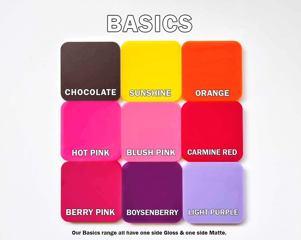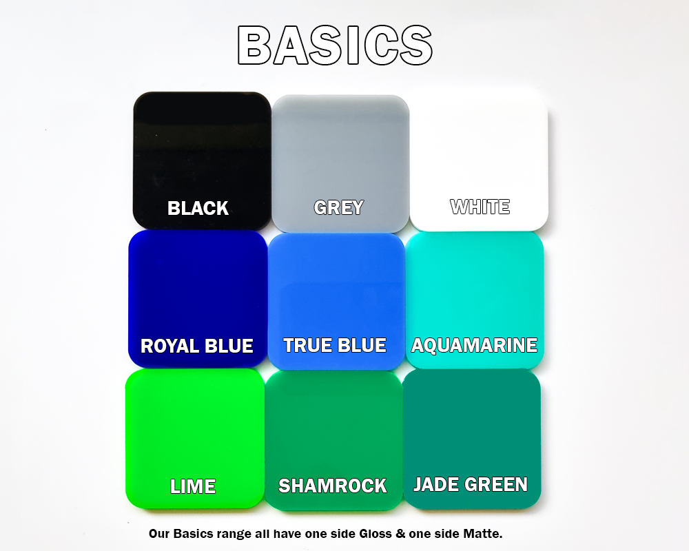 Welcome to our acrylic library. Take note of the info in each section as different acrylics have different quirks & things to note. For general acrylic info & FAQ head to the bottom of the page.