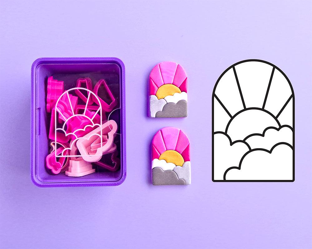 This Build-A-Landscape shape matches perfectly with our 40mm Arch Long cutter & I highly recommend you have one for creating backings. Any Moons or Stars I've made with 6mm Micro Cutters & Suns/Circles with 5mm from the Micro Circle set.