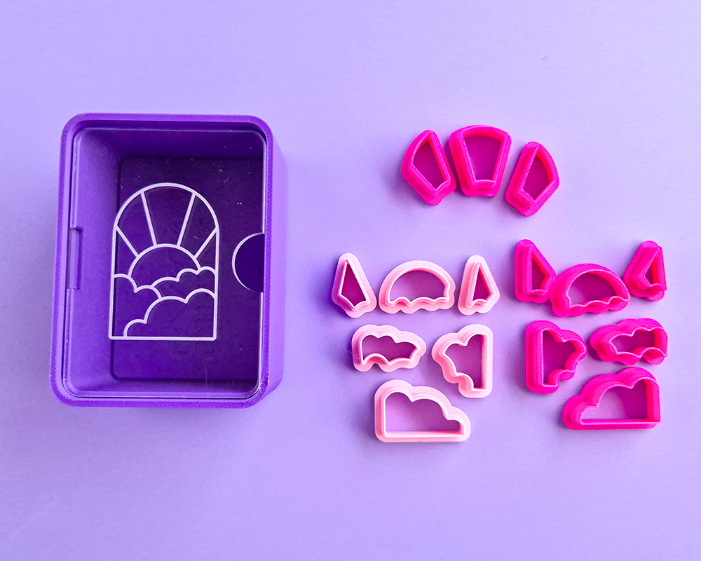 Build-A-Landscape Cutters are mirrored sets designed to fit together to form a 40mm tall landscape scene. Incredibly customizable with colour or the addition of suns, moons, stars & texture.